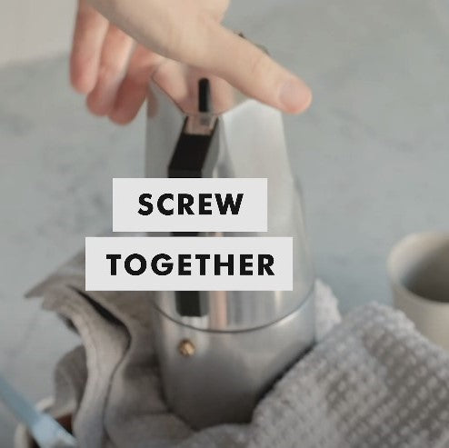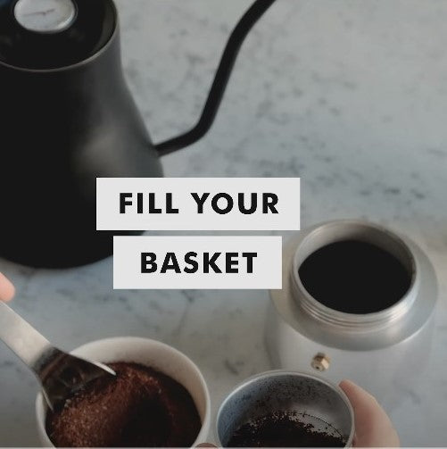 2. Place ground coffee in the basket (don’t pack it down) and assemble the Moka Pot (be careful it might be hot)