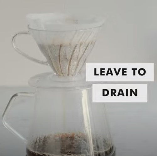 6. Leave to drain completely. This process should take around 3 minutes 30 seconds. If it’s longer then you might want to have a coarser grind and vice versa.