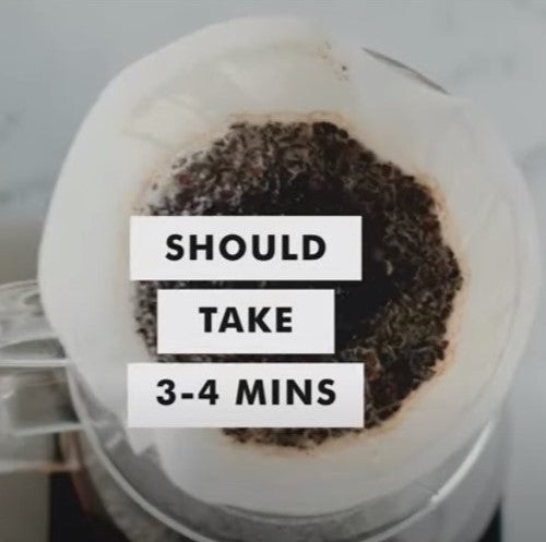 You can judge by the length of time it takes to brew and make adjustments if you're grinding at home. As with the recipe above, total brew time should be approximately 3 minutes and 30 seconds. If you're finding, it's taking less time then consider tightening your grinder or inversely loosing it up if it's too slow.